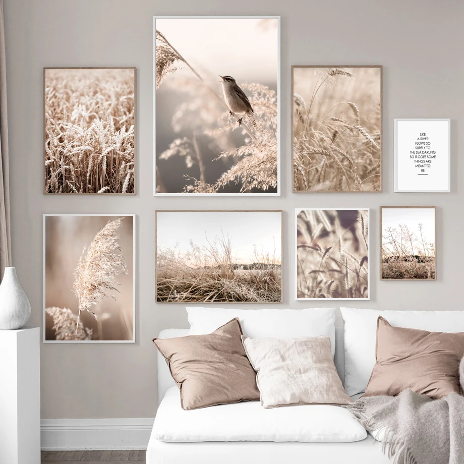 Камышовая пшеница, растение, птица, осенняя цитата, скандинавские плакаты и принты, настенная живопись, холст, настенные картины, гостиная, украшение для дома
