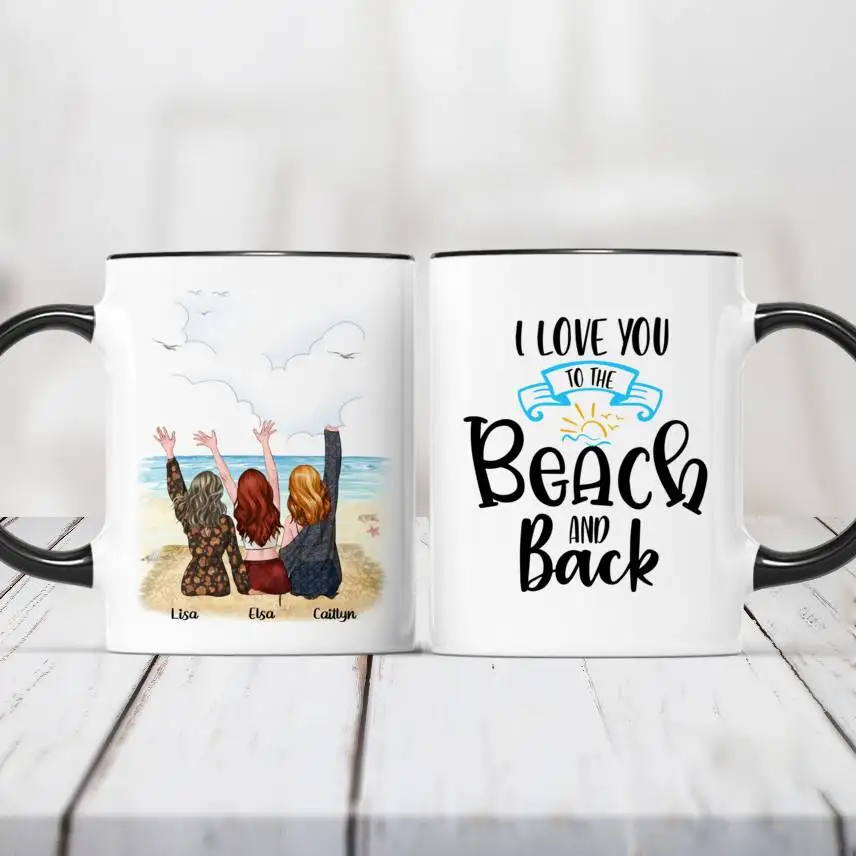 Персонализированная кружка, лучшие друзья, лучшие друзья, до 5 девушек, я люблю вас на пляже и обратно, изготовленные на заказ кофейные чашки, кружки RR2039