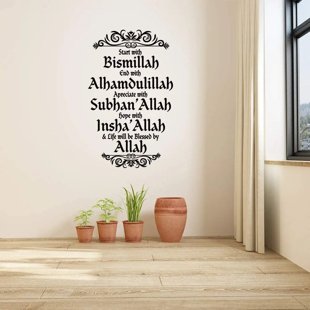 Исламская начать с Bismillah Уолл Стикеры Сура Арабский Мусульманский Bismillah Аллах Коран наклейка-цитата на стену Гостиная виниловые обои Декор