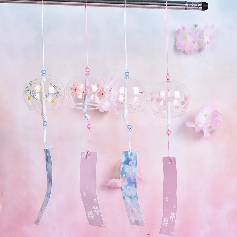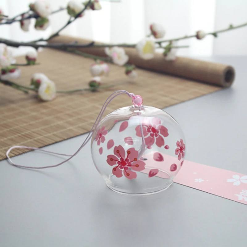 SKTN Стеклянные Колокольчики в японском стиле, подвесные колокольчики, украшение для дома Sakura узор цветущей сакуры, украшение для дома