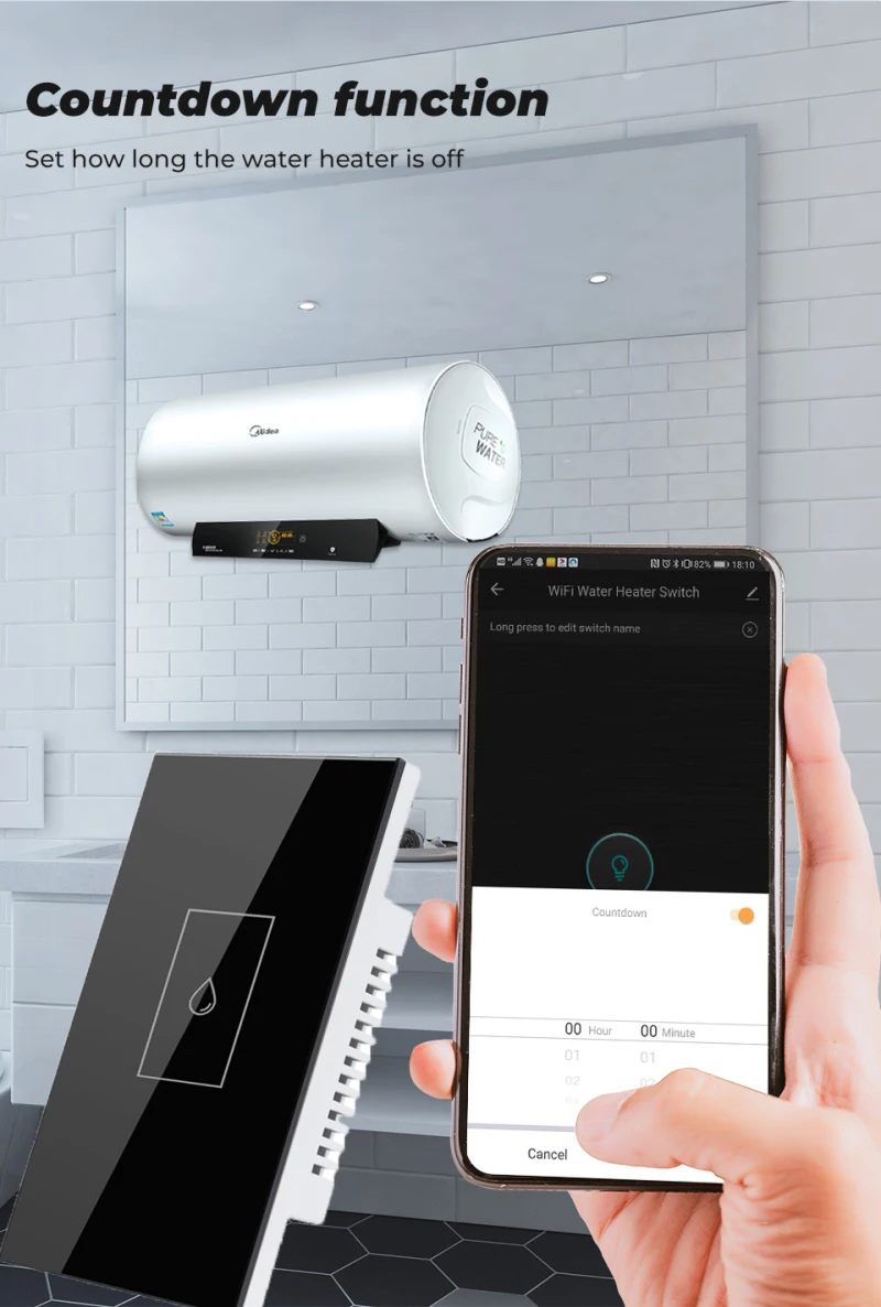 Умный переключатель для водонагревателя Tuya 20A, ЕС, США, Wi-Fi, стеклянная панель, выключатель, дистанционное управление, голосовое управление, работает с Alexa Google Home
