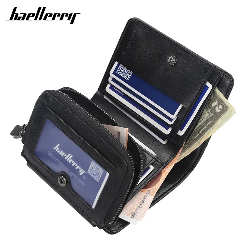 Кошельки мужские, с гравировкой имени, складываются втрое, высокое качество, на молнии, короткий дизайн держатель для карт, мужской кошелек, винтажный держатель для монет, мужские кошельки
