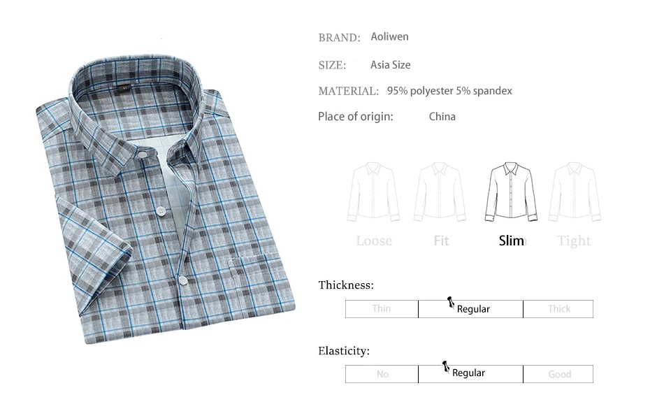 Мужская рубашка в клетку Aoliwen, летняя приталенная рубашка с коротким рукавом, 2021, рубашка с квадратным воротником