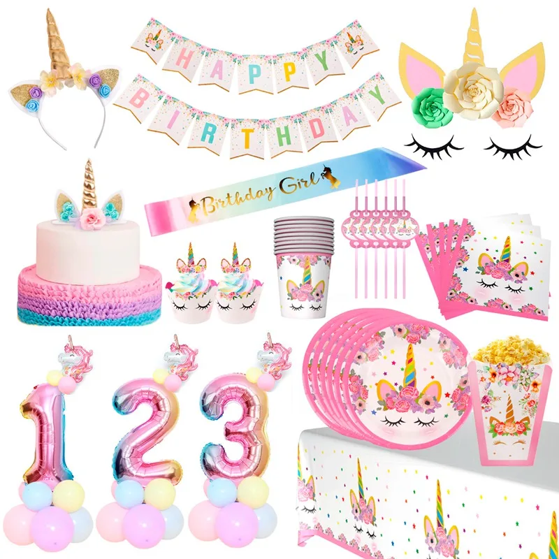 PATIMATE Единорог вечерние посуда шар 1st День рождения вечерние украшения душа ребенка Дети Единорог вечерние поставки девочка Единорог