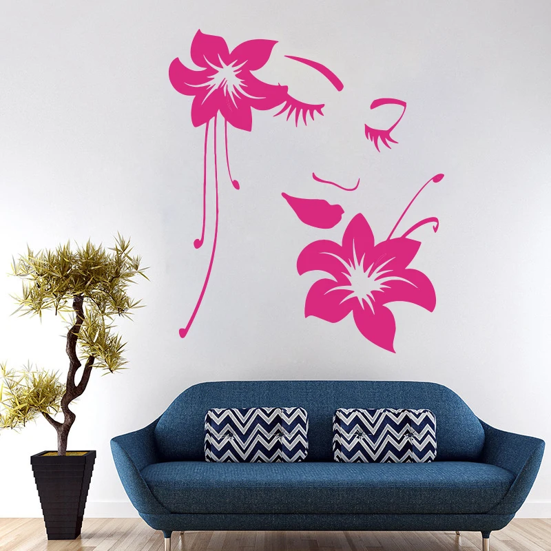 ThemeBeauty Flower Girl Woman Face Wall Sticker
