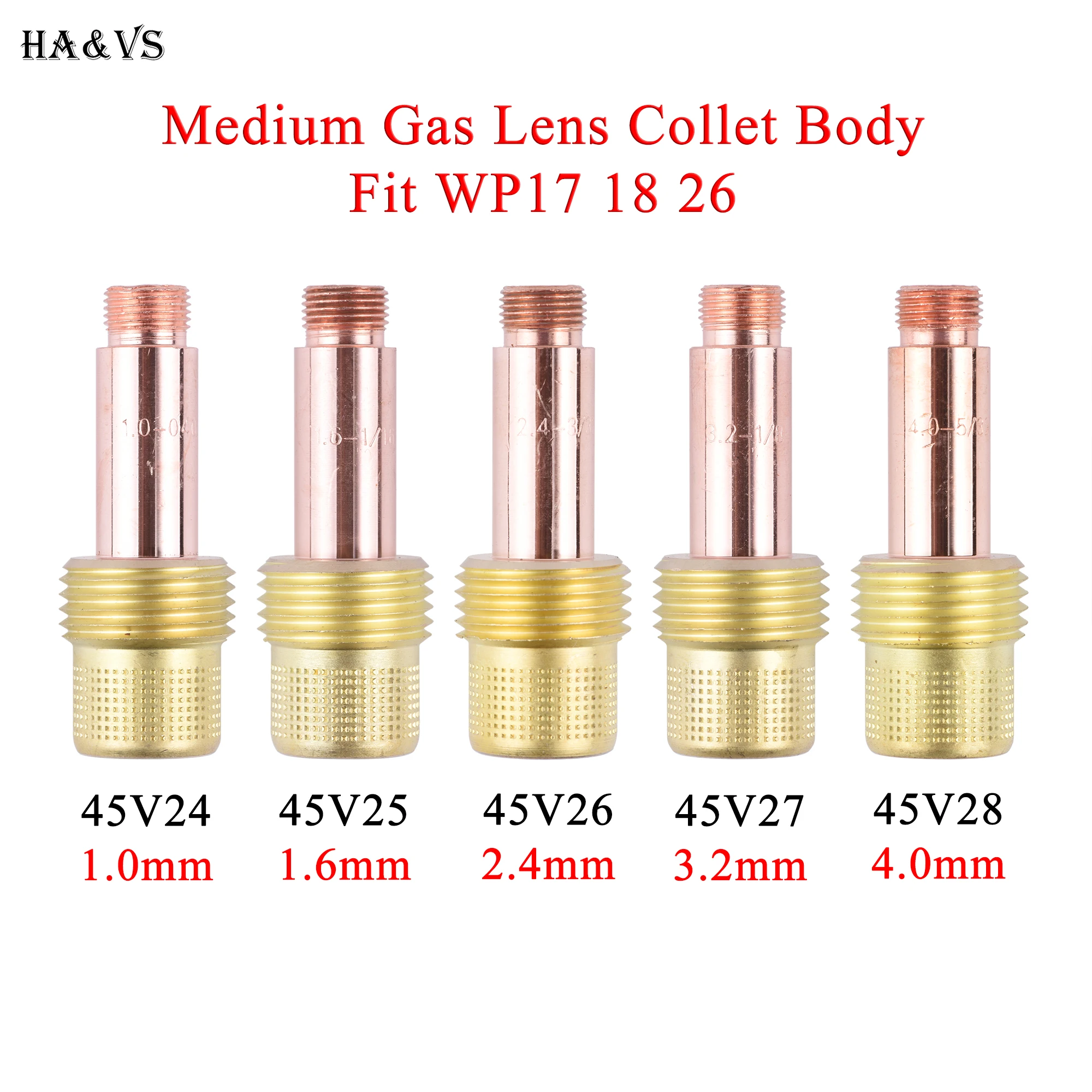 Комплект газовых цанговых линз TIG 1,01,62,43,24,0 мм 45V24 45V25 45V26 45V27 45V28 для сварофонарь TIG WP171826, 510 шт.