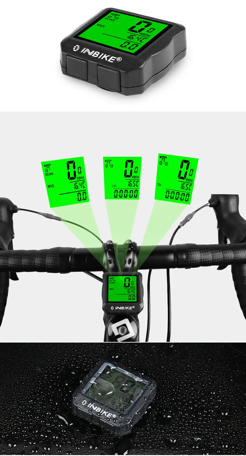 INBIKE многофункциональные проводные часы в режиме реального времени, скоростной велосипед, велосипедный скоростной метр, водонепроницаемый велосипедный компьютер, светодиодный цифровой секундомер