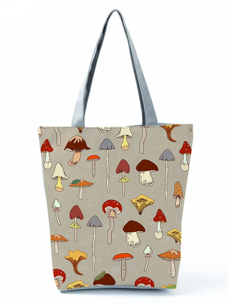 Повседневная Коричневая женская сумка с принтом грибов, многоразовая сумка для покупок с высокой вместительностью, Женская Складная Сумка-тоут на плечо с индивидуальным узором