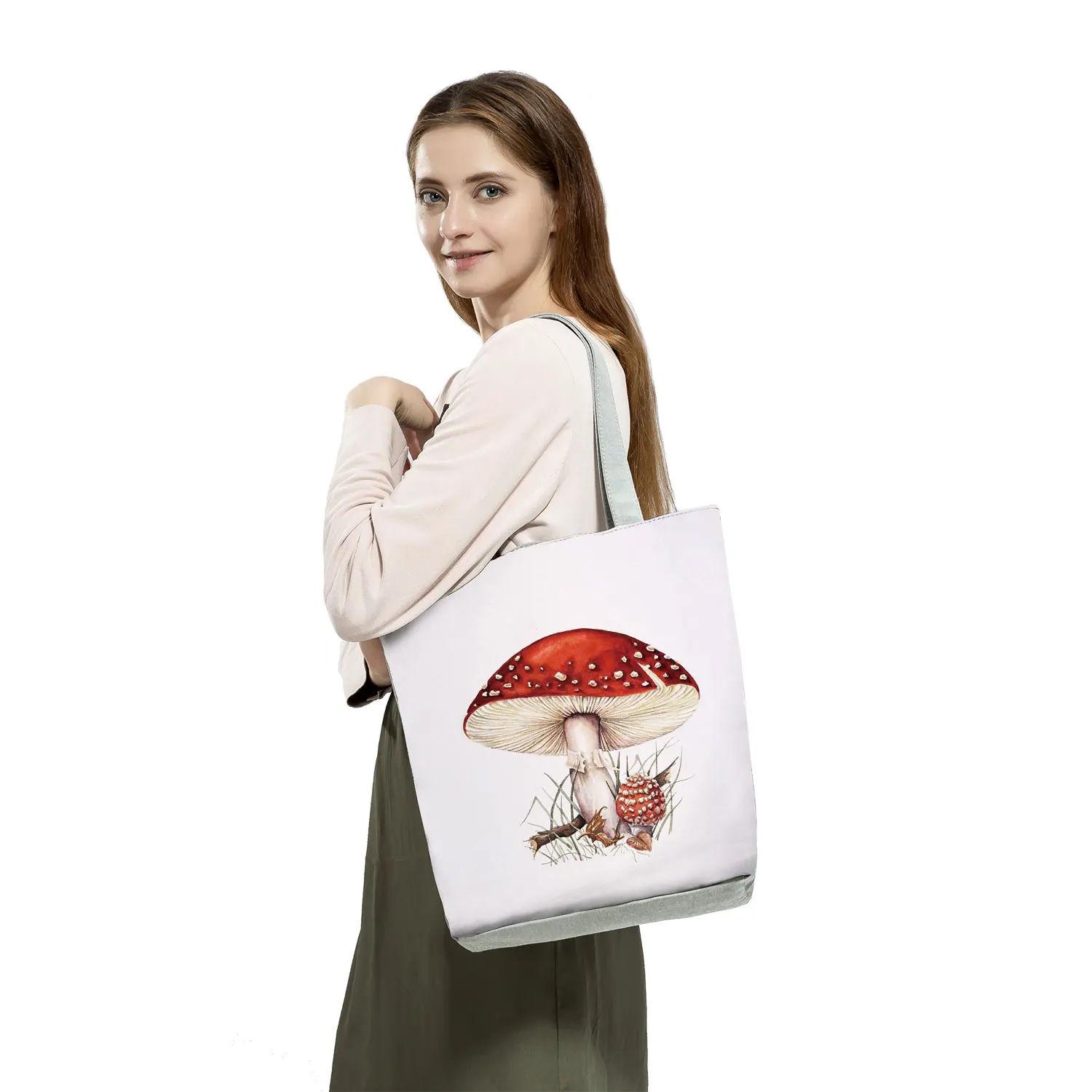 Яркие цветные сумки с принтом в виде грибов, Женская Экологически чистая многоразовая вместительная сумка для покупок, Складная портативная дорожная сумка-тоут через плечо для девушек