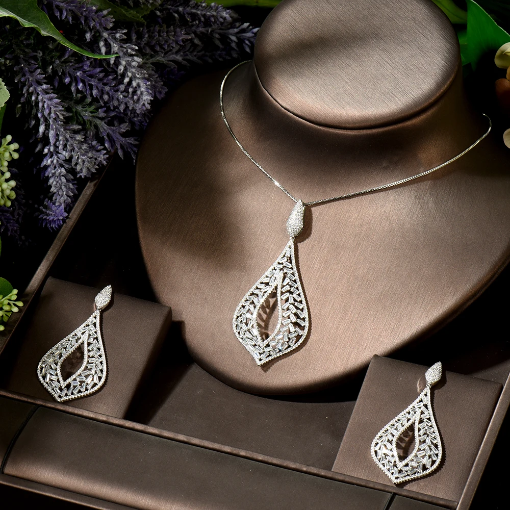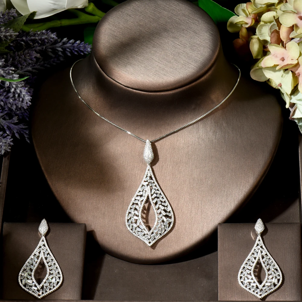 HIBRIDE великолепный Женский Свадебный комплект из 2 предметов, ожерелье и серьги с фианитами, высокое качество, свадебные украшения, juego de joyas para mujer, N-1888