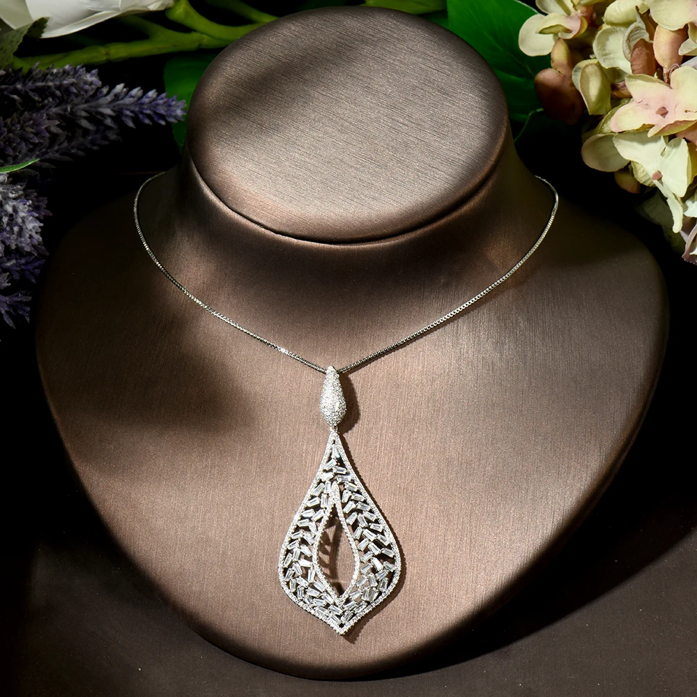 HIBRIDE Роскошный прозрачный кристалл циркония серьги и ожерелье на...