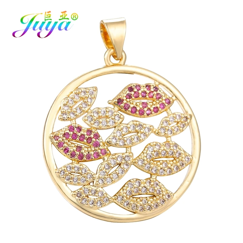 Подвески Juya для женщин, золотистый Лев, Хамса, рука от сглаза, Любовный сердечный медальон губы, снежинка, ручная работа, Ювелирная подвеска