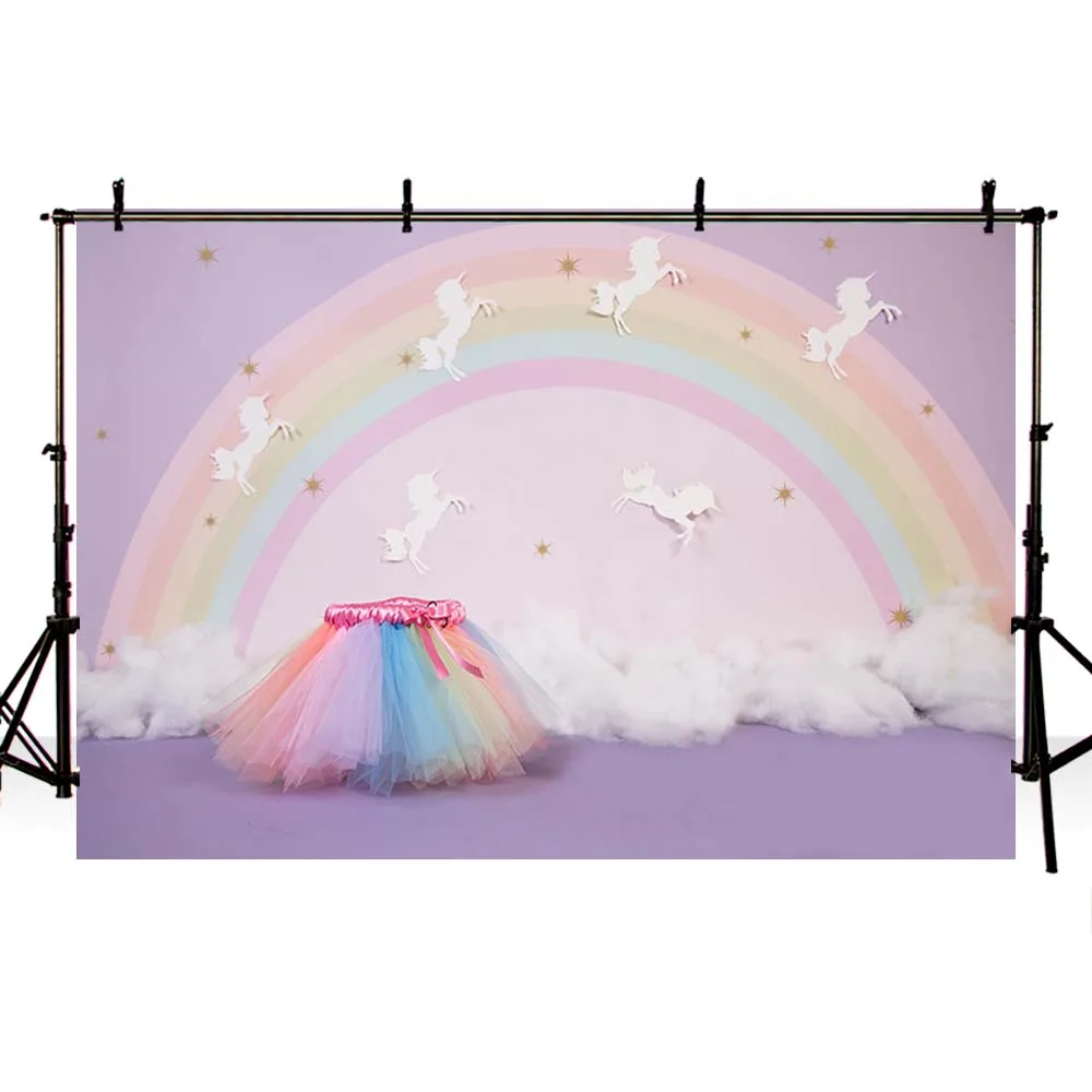 Фон для фотосъемки Mehofond с изображением единорога, радужных цвет...