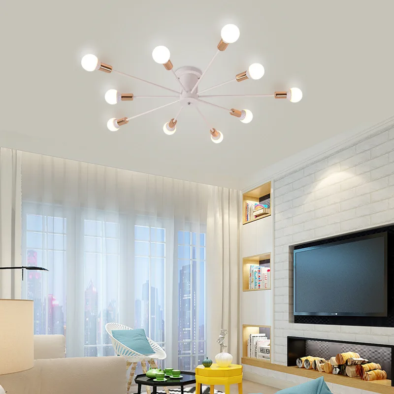Винтажная люстра-паук Ретро железная люстра черный/белый 6/8/10 розетки освещение для гостиной кухни фойе спальни приспособление освещение