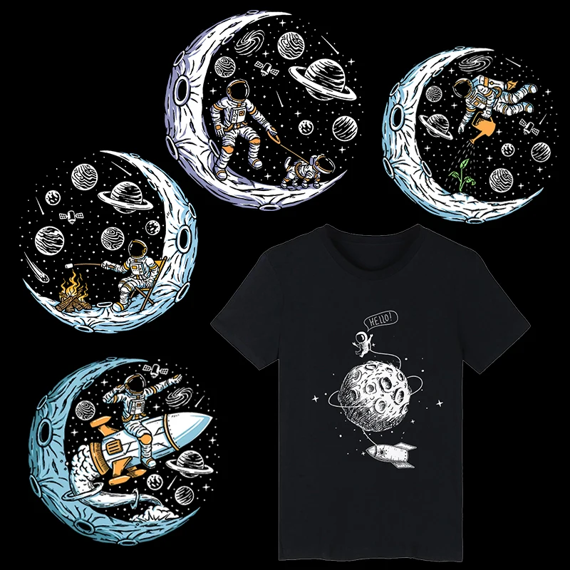 DIY Луна астронавт утюгом патчи для одежды теплопередача Винил Мультфильм Вселенная наклейки с космосом патчи на одежду значок