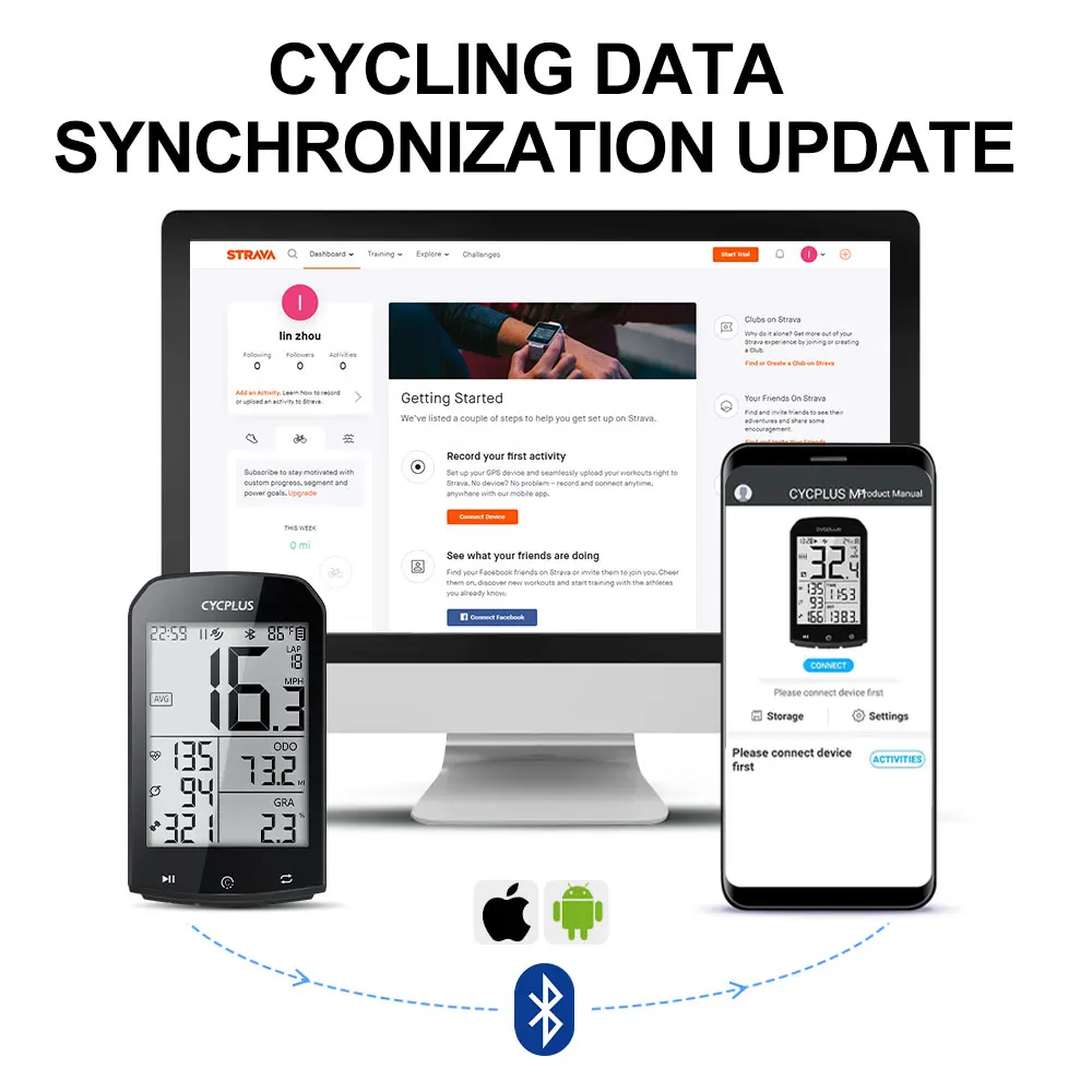 Велосипедный компьютер CYCPLUS M1, GPS, спидометр, водонепроницаемый, IPX6 ANT + Bluetooth, Аксессуары для велосипеда XOSS Strava