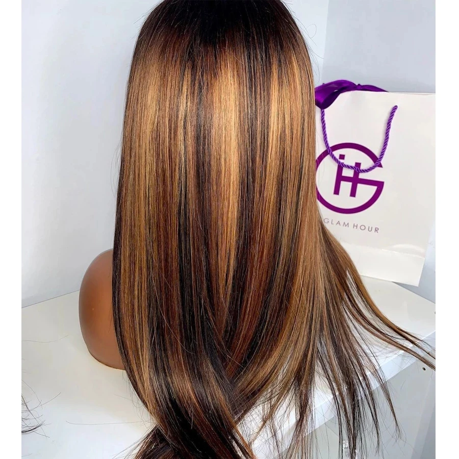 Парики из натуральных волос шоколадно-коричневого балаяжа, прямая п...