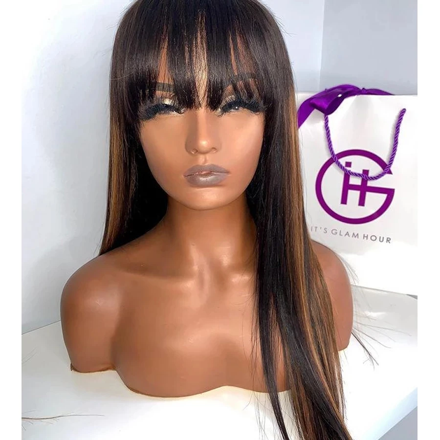 Парики из натуральных волос с челкой на шелковой основе, 360 лобовы...