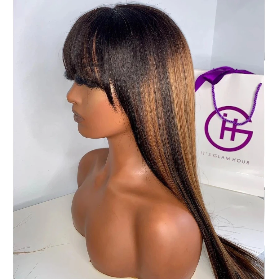 Перуанский Шелковый прямая челка Боб коричневый Синтетические волосы на кружеве человеческих волос парики с детскими волосами 13x6 кружево парики для чернокожих Для женщин Выбеленные узлы