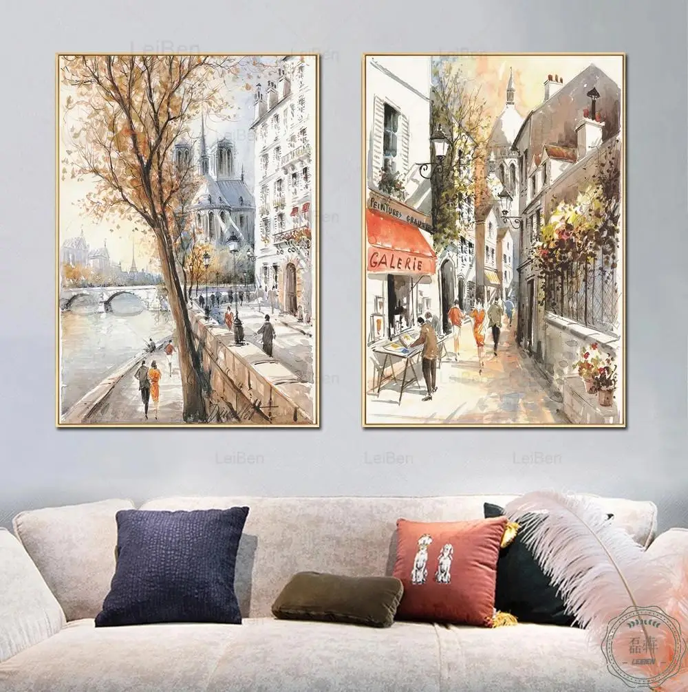 Абстрактный Парижский уличный пейзаж, пейзаж Сены, картина маслом н...