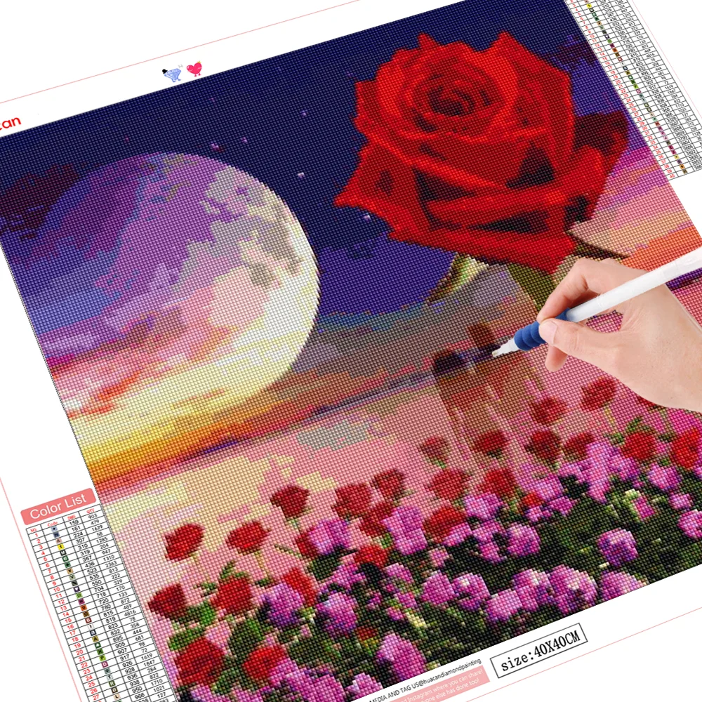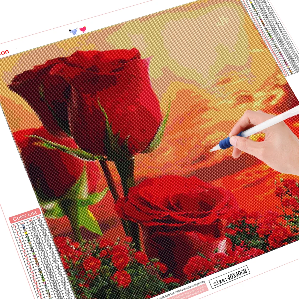 Набор для рукоделия HUACAN, алмазная 5d Вышивка с квадратнымикруглыми цветами, мозаика с розами, закат, для творчества, домашний декор