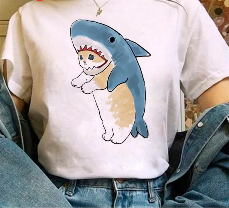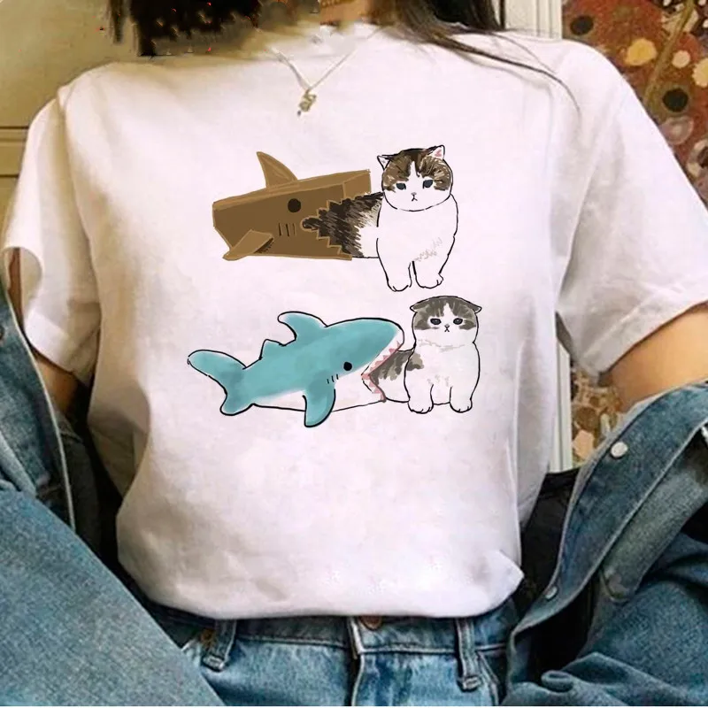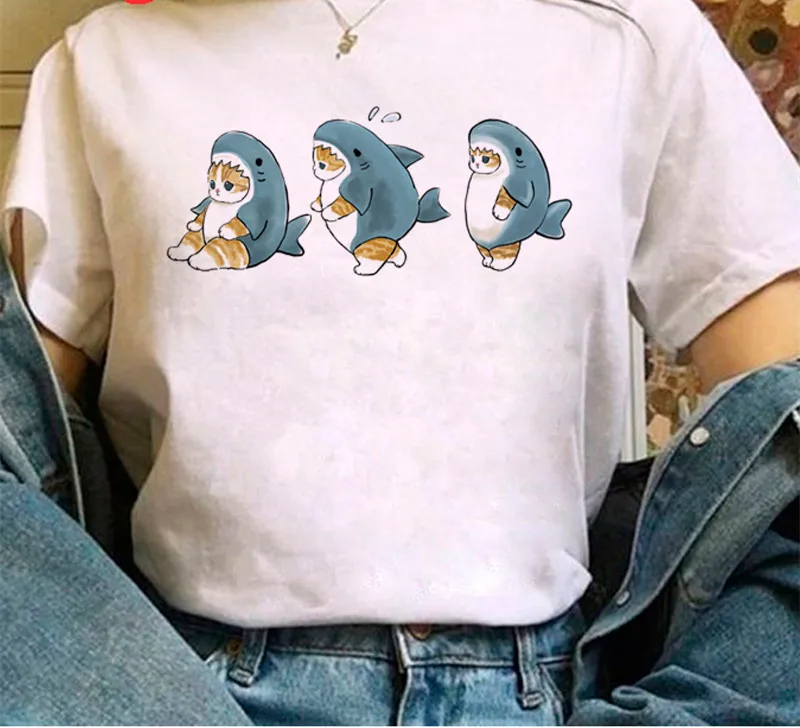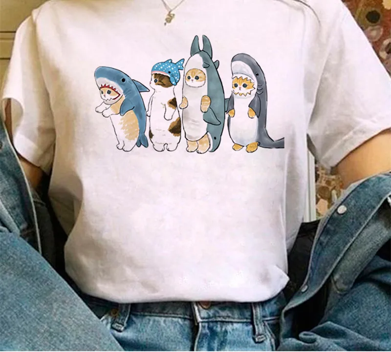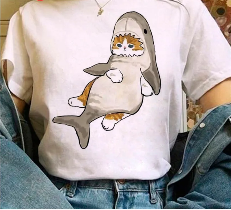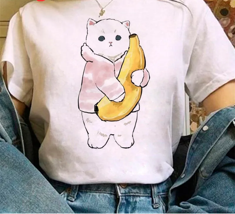 Футболка женская с мультяшным котом, смешной Графический Топ в стиле Харадзюку, футболка в Корейском стиле, кавайная
