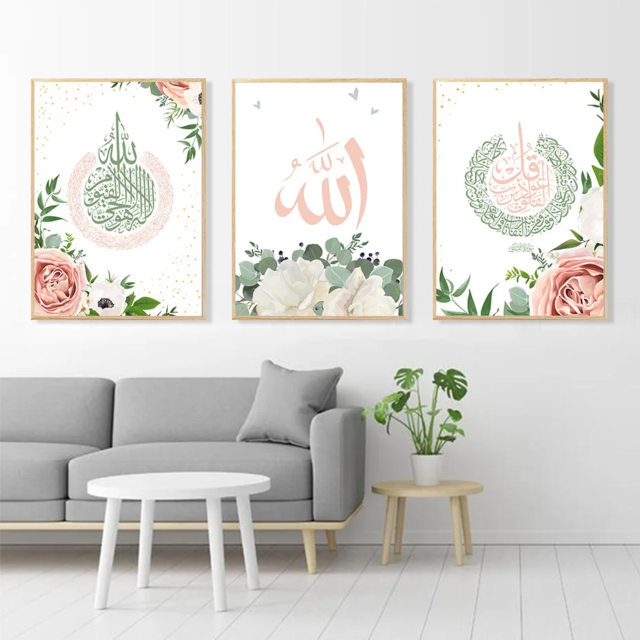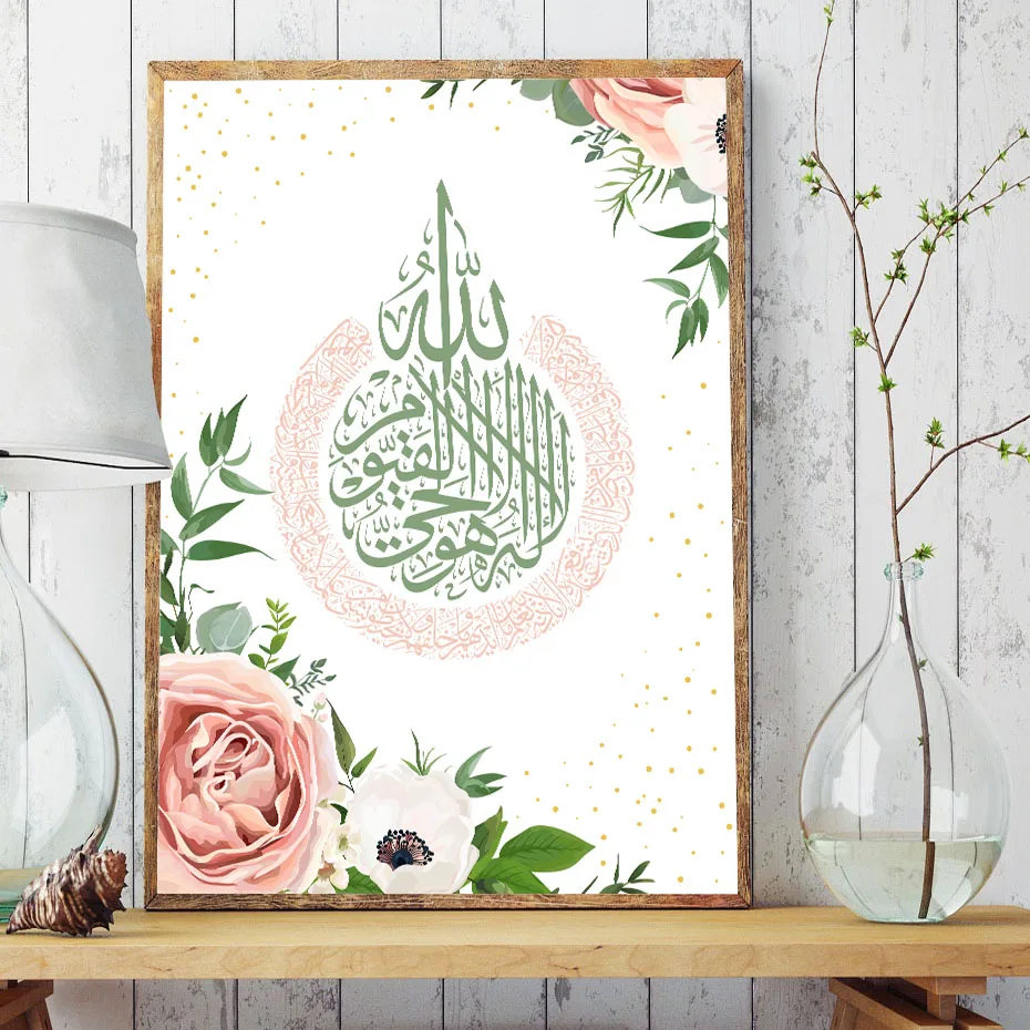 Плакаты и принты для спальни, розовые, аятул КУРСИ, исламские насте...