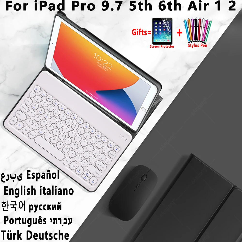 Волшебный клавиатура чехол для iPad Pro 9,7 6th 5th Generation iPad Air 1 2 русский, испанский, корейский Арабский Иврит турецкий португальская клавиатура
