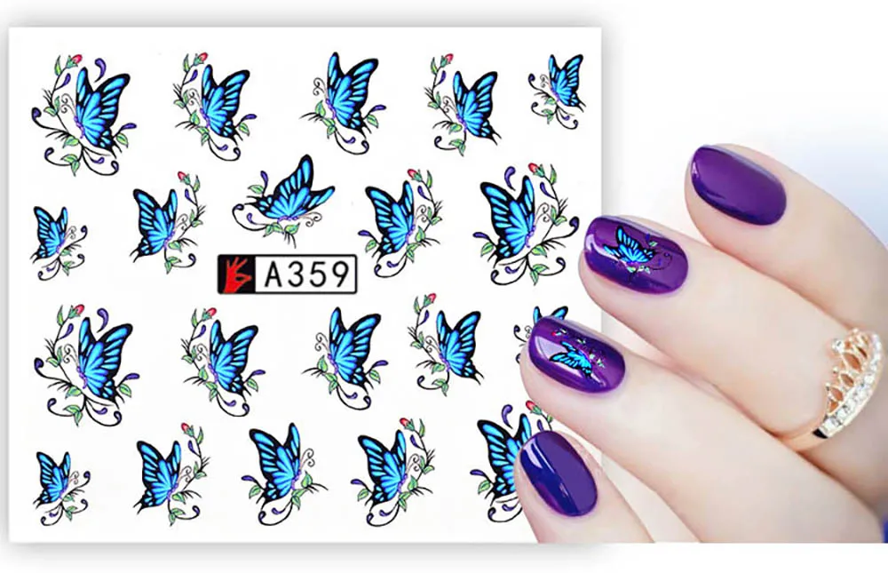 Цветные бабочки серии ногтей водяной знак стикер цветок лист DIY Весна и лето новый цветок вишни шар дерево фиолетовый