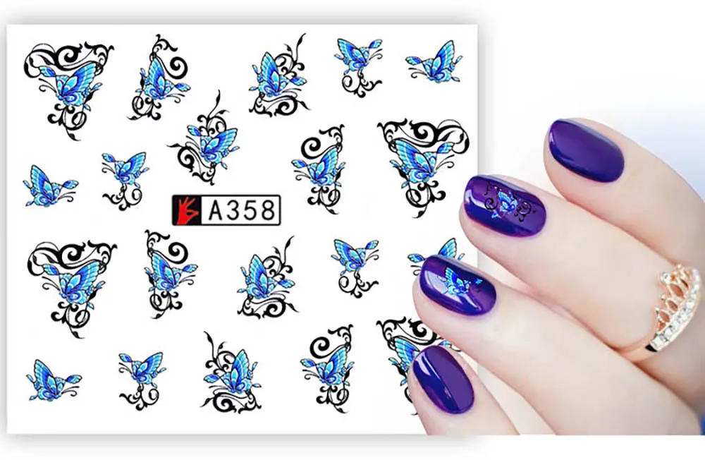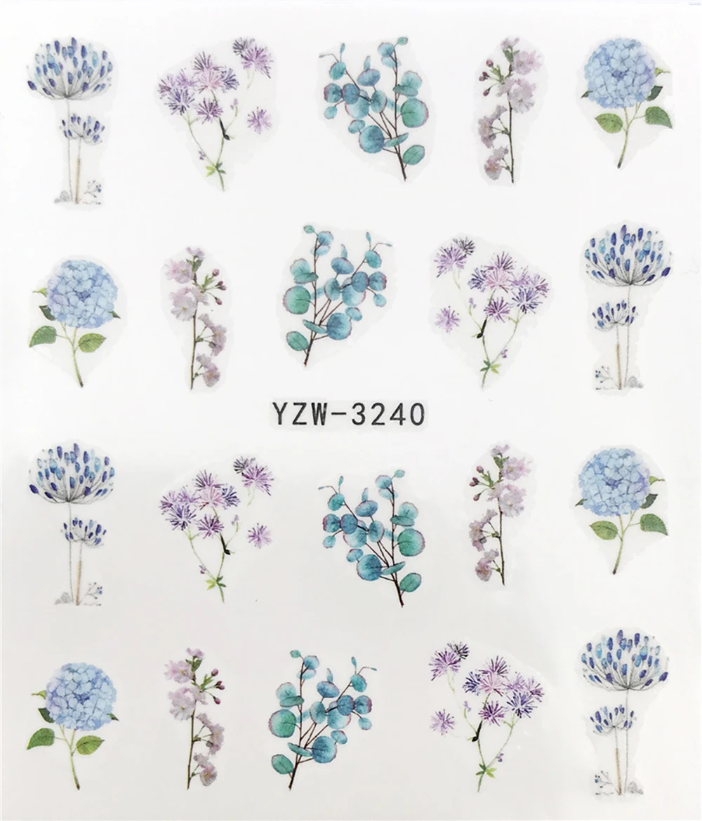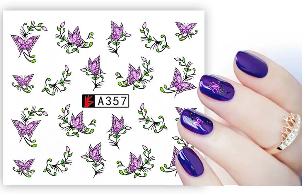 Цветная Бабочка Серия водяной знак для ногтей Наклейка цветок лист Сделай Сам Весна и лето Новинка Вишневый цветок шар дерево фиолетовый