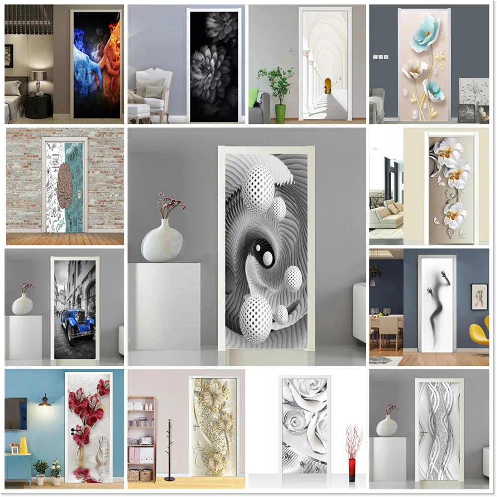 Сфера, геометрия, 3D наклейки для просмотра на дверь, коридор, настенное украшение, сделай сам, клей, съемная роспись, цветок, абстрактная печать, постер на дверь