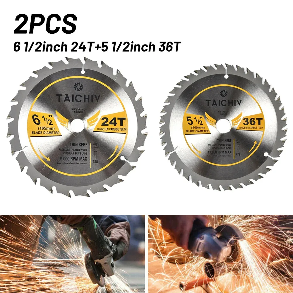Головка для циркулярной пилы YG6, 2 шт., карбид стали 50, 6-12 дюйма, 24T и 5-12 дюйма, 36T, для мягкого и жесткого резка дерева и пластмассы