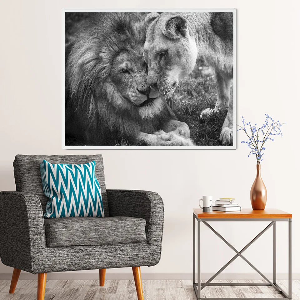 Алмазная живопись 5D сделай сам, животное, солнце, луна, Лев, вышив...