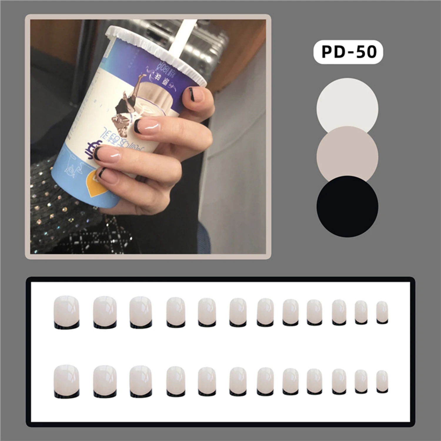 Съемные накладные ногти, короткие, черные, французские, 24 шт.