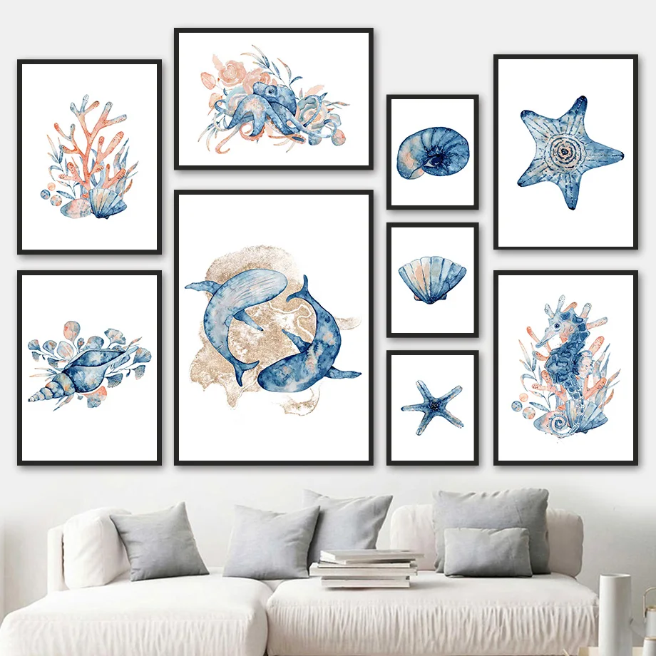 Морской Кит, дельфин, осьминог, морская жизнь, настенная Картина на...