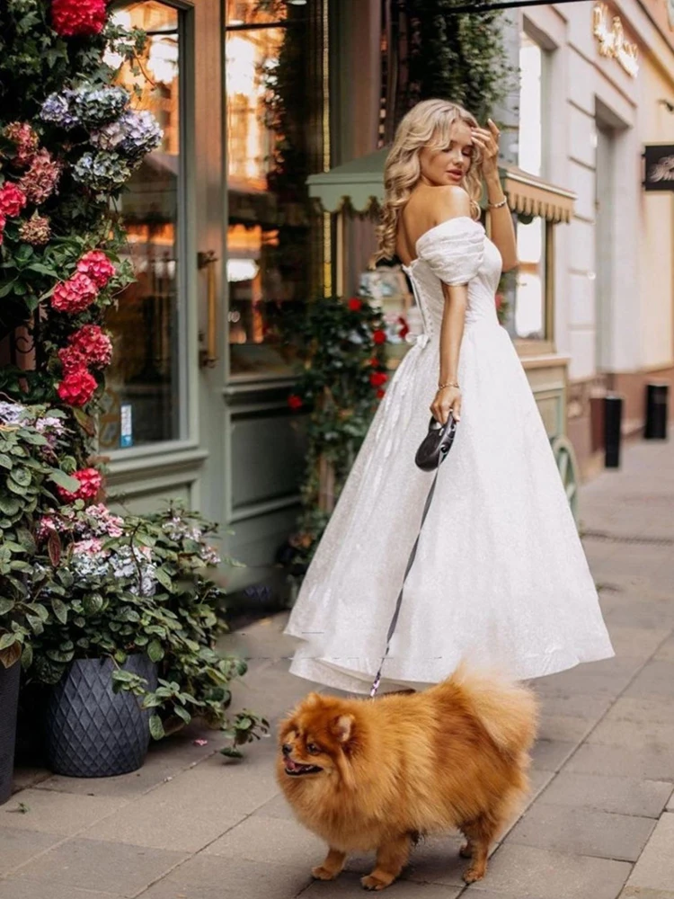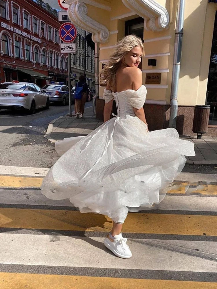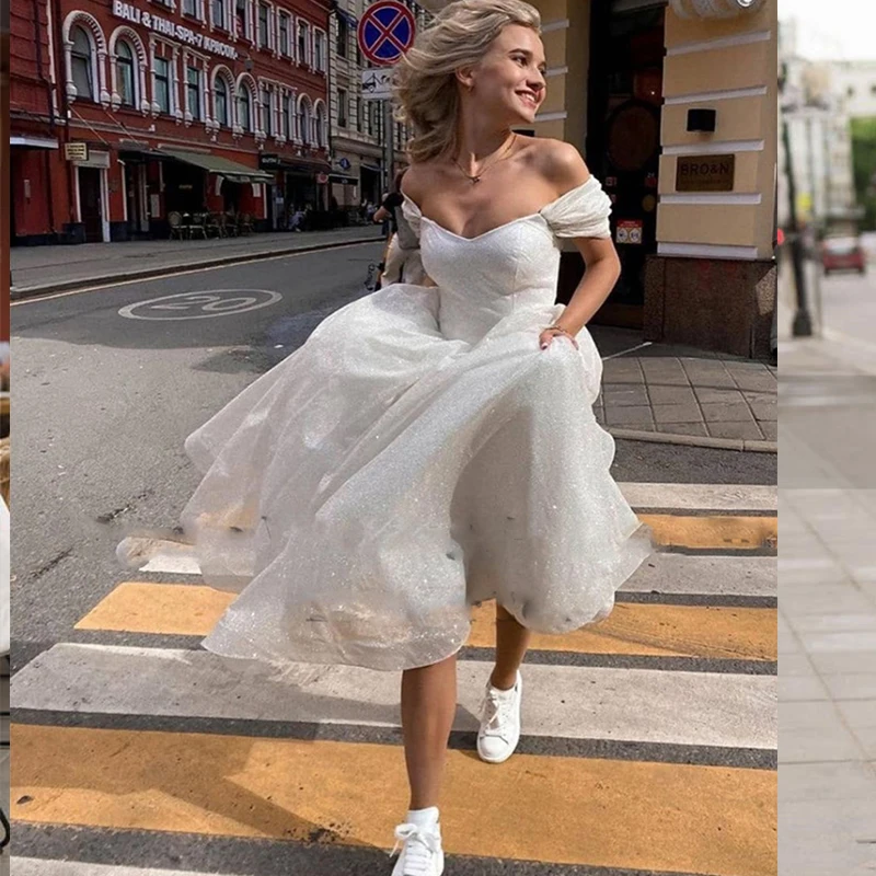 Элегантные короткие свадебные платья до щиколотки, атласное пляжное платье в стиле бохо, белое, цвета слоновой кости, Тюлевое платье принцессы, многоярусные свадебные платья