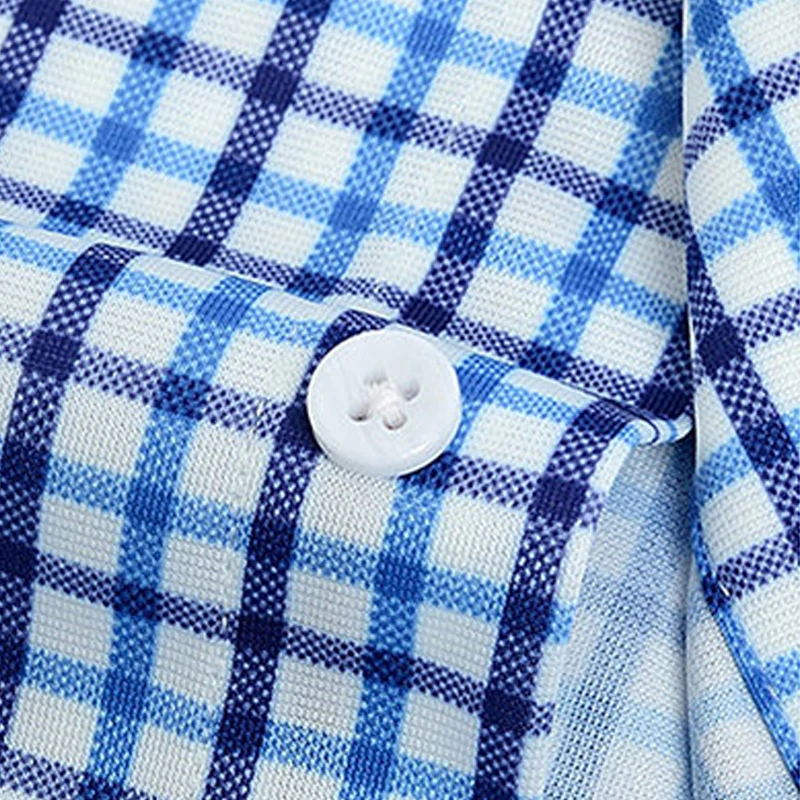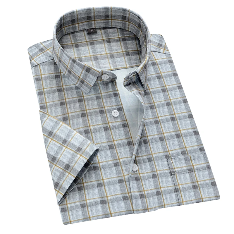Aoliwen бренд 2021 Для мужчин клетчатая футболка в полоску с короткими рукавами одним накладным карманом на пуговицах молодой Повседневное, с клетчатым узором, тонкая рубашка