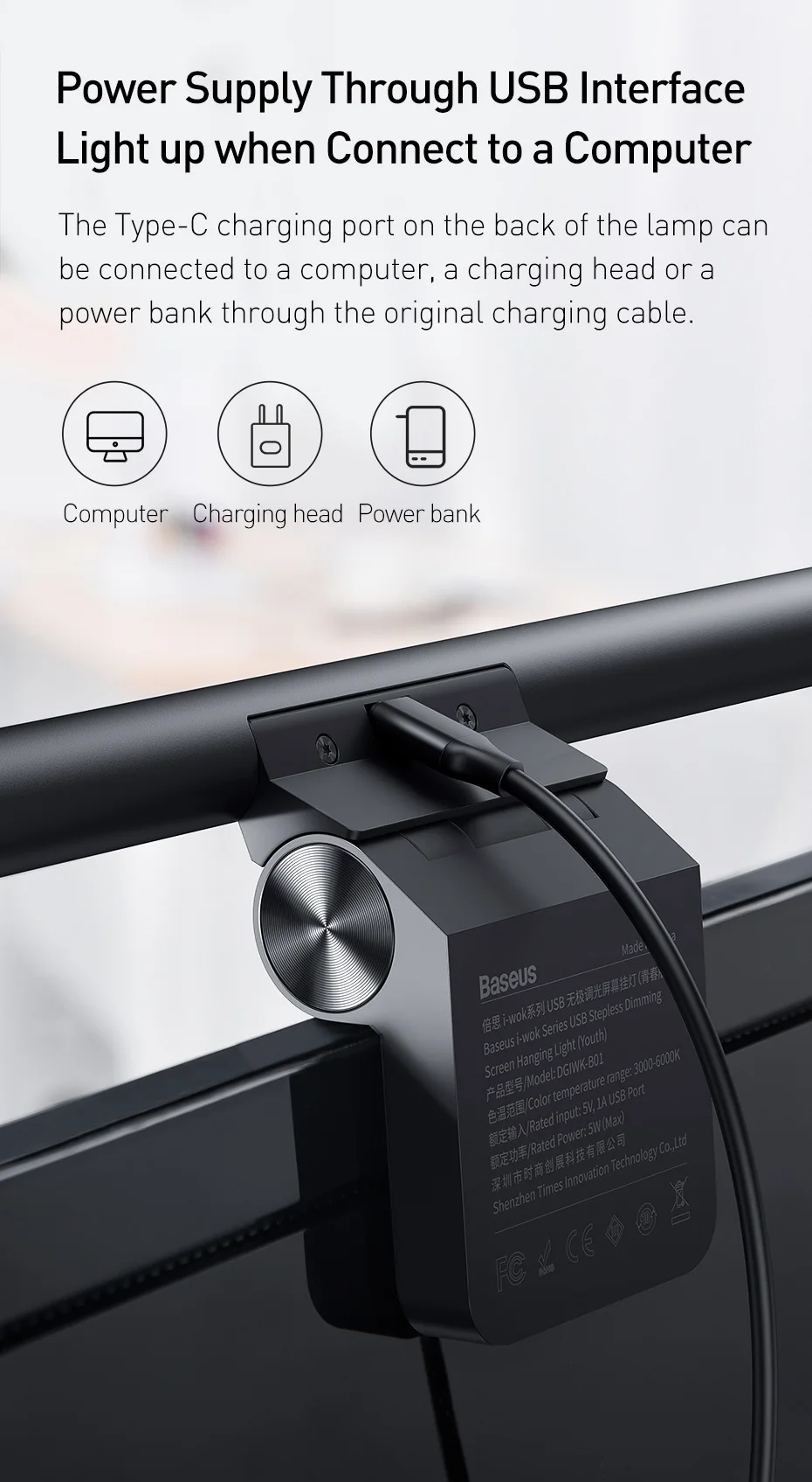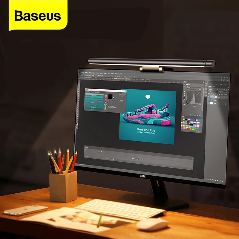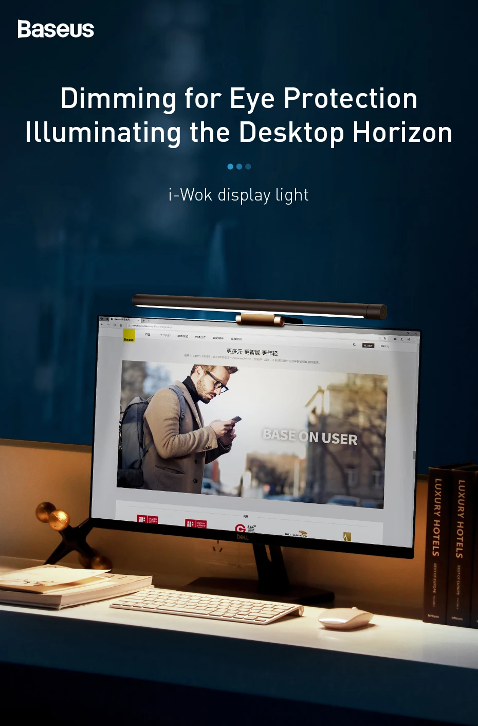 Светодиодная настольная лампа Baseus, асимметричный светильник для экрана с плавным затемнением, освещение для чтения для монитора ПК