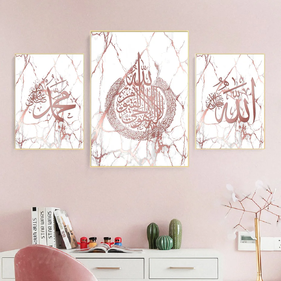 Розовая мраморная каменная мусульманская Картина на холсте надпись ...