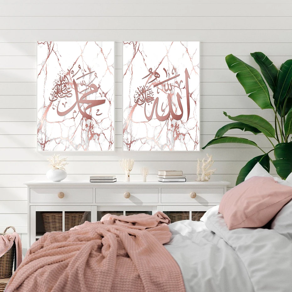 Розовое золото, исламское искусство, холст, Постер и принты Аллаха ...