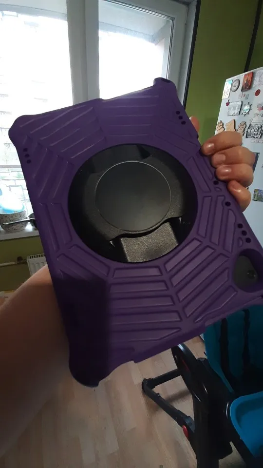 Чехол классный. Не уверена, что на фото видно, но бортик впереди толстый. Значит при падении плашмя планшет точно не ударится экраном. Вырезы под кнопки подходят, но кнопку блокировки нажимать не очень удобно, особенно если ногти длинные. Сомневаюсь насчёт устойчивости на откидной "ножке". Выглядит хлипковато. Но это мелочь по сравнению с плюсами. Чехол толстый, упругий (будто чуть пружинит при падении) и при этом лёгкий. То, что надо для ребёнка.