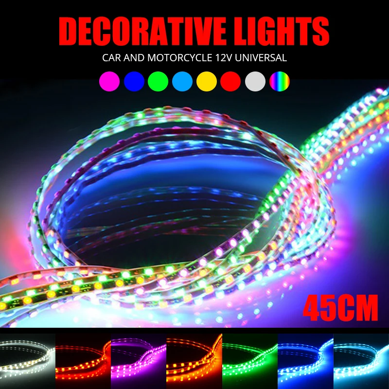 Применение: * Светильник для праздника, мероприятия, выставки * применимы для украшения автомобиля и велосипеда, пограничного или контурного освещения * Часть передних фар автомобиля, багажника, внутренняя атмосферная лампа * разноцветная домашняя жизнь, сделай сам домашний свет s для прихожих, лестниц, троп, окон, Светильник ящиеся красочные декорации для гостиниц, театров, клубов, торговых центров, фестивалей и выступленийПримечание: * Если она не загорается, пожалуйста, переверните лампу горизонтально, чтобы соответствовать + и-полярности * эту полосу света нельзя разрезать на кусочки!Посылка входит: 1x45 см Светодиодная светильник