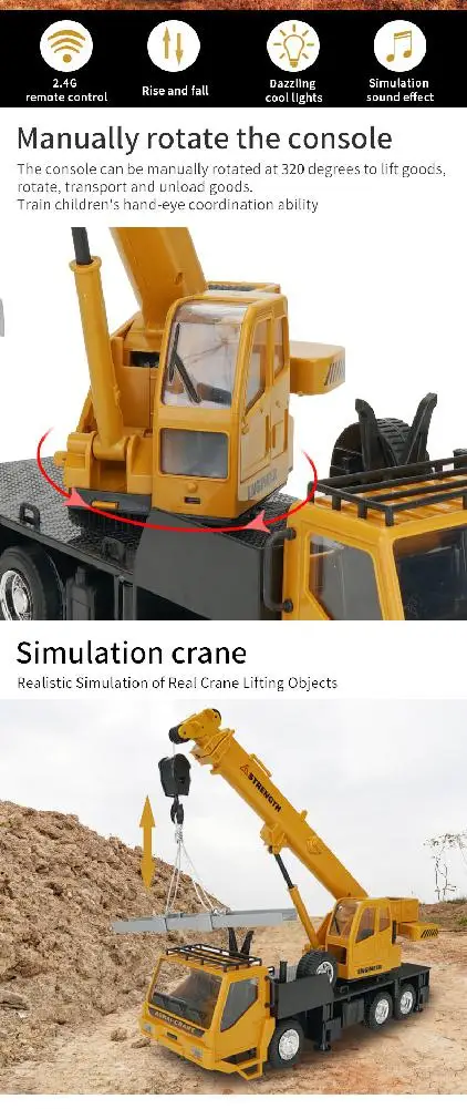 Масштаб 1:24 10CH, имитация крана, экскаватора, беспроводной Радиоуправляемый транспорт, Инженерная техника, грузовик с подсветкой, заряжаемый Радиоуправляемый автомобиль, автомобили, игрушки