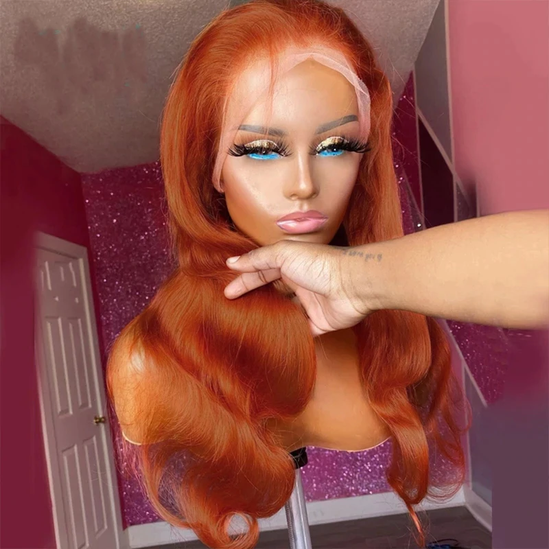 Парики из натуральных волос имбирного и оранжевого цвета, на шнуровке спереди, с застежкой на сетке, синтетические, с детскими волосами, повседневная одежда