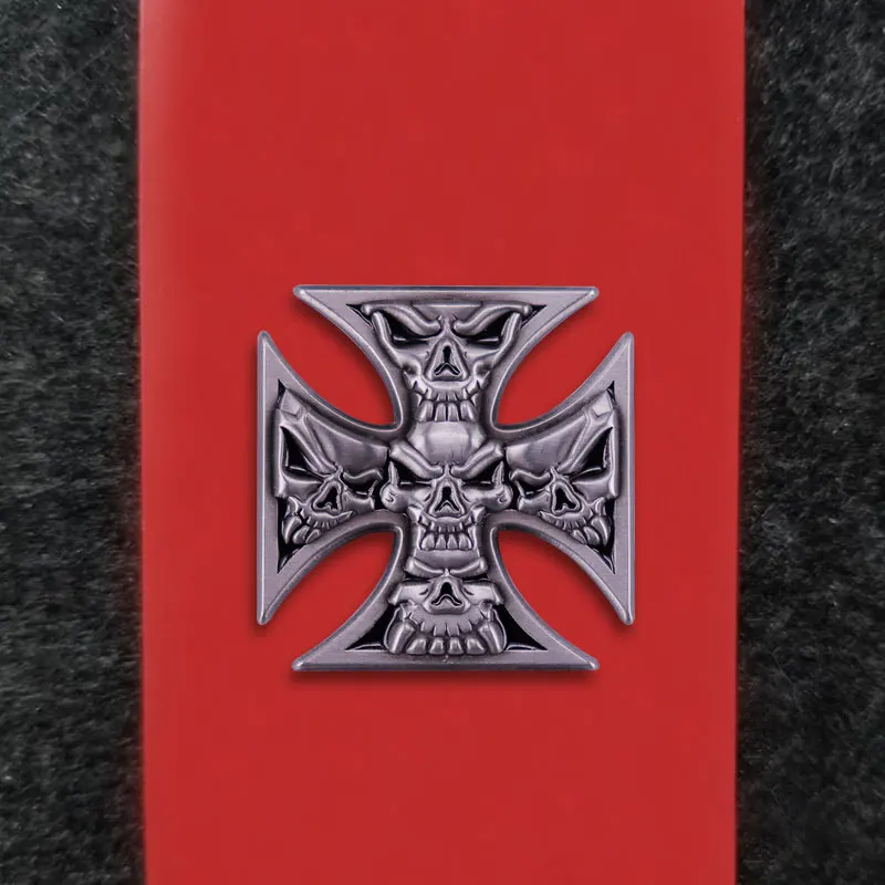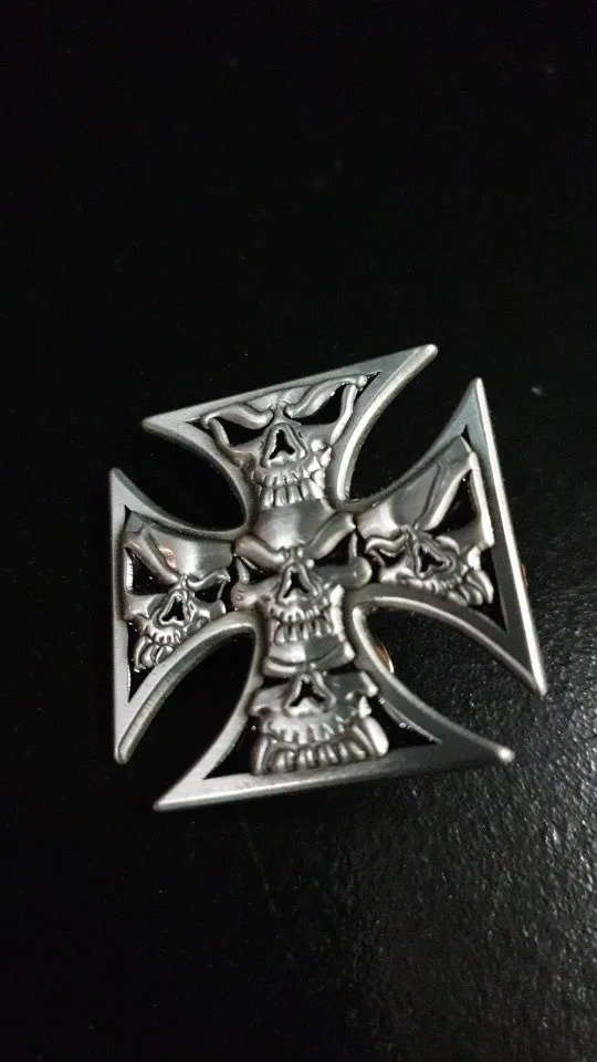 Металлическая брошь с железным крестом и черепом, модные аксессуары для байкеров EVIL 5-SKULLS