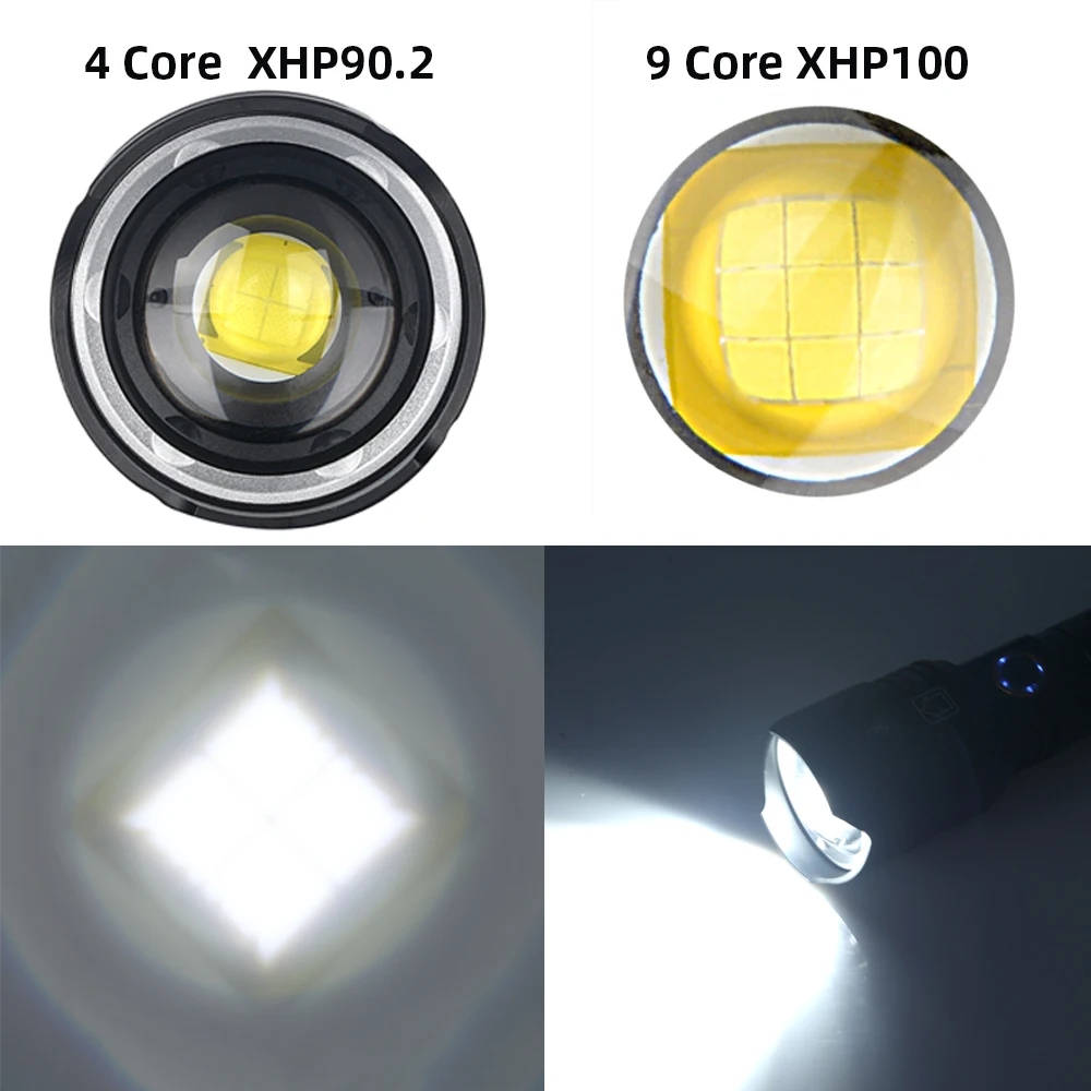 Мощный 9-ти жильная XHP100 светодиодный фонарик USB аккумуляторная ручная лампа XHP90 Масштабируемые тактический фонарь вспышка света для кемпинга на открытом воздухе
