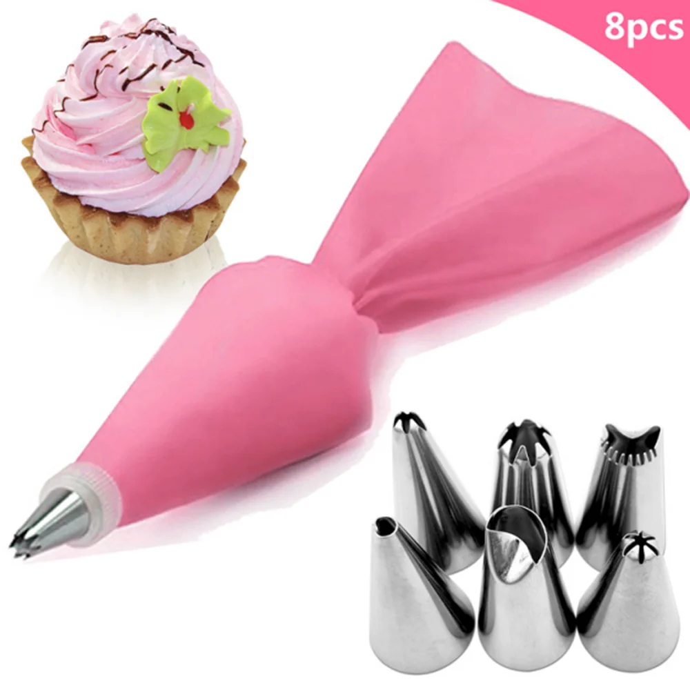 8 шт.пакет силиконовый кондитерский мешок для айсинга и 6 элементов...