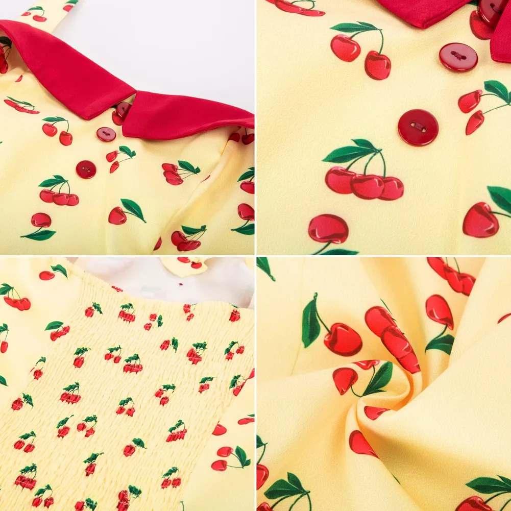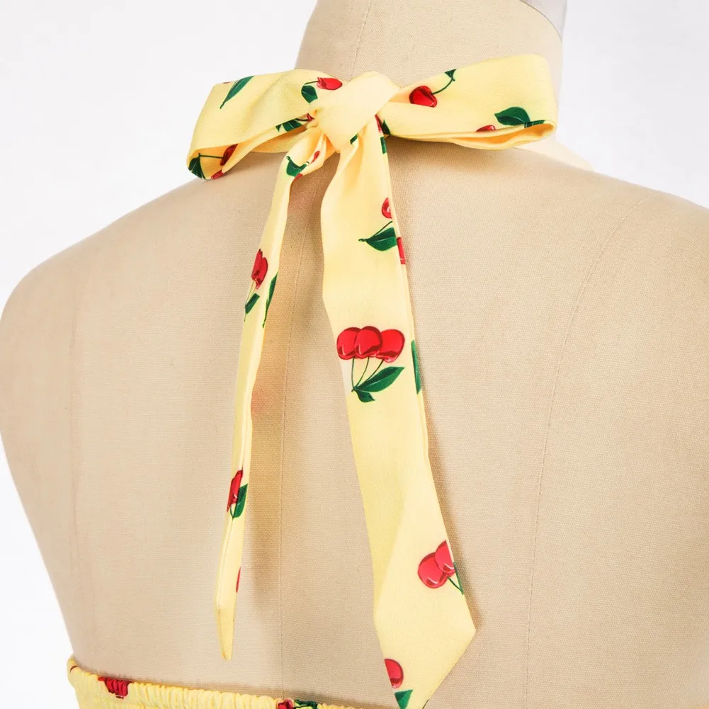 Женский топ на пуговицах с принтом вишенок, винтажный топ с открытой спиной, воротником-хомутом, декор одежды на лето