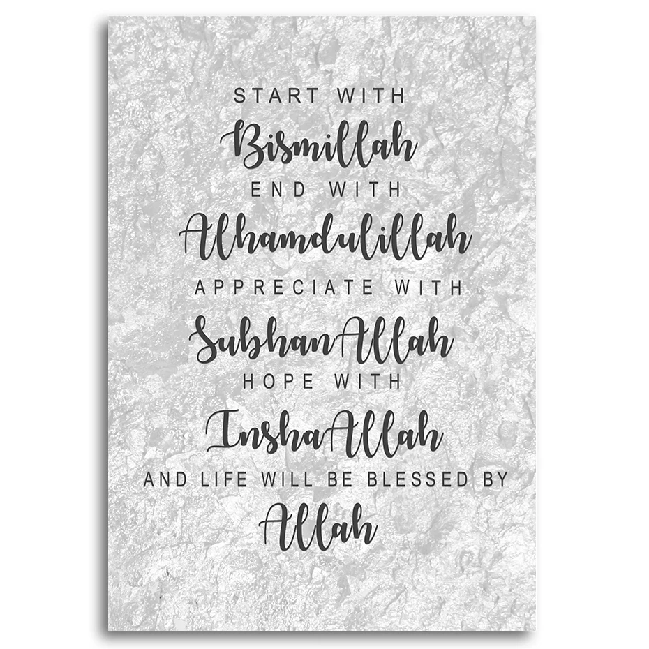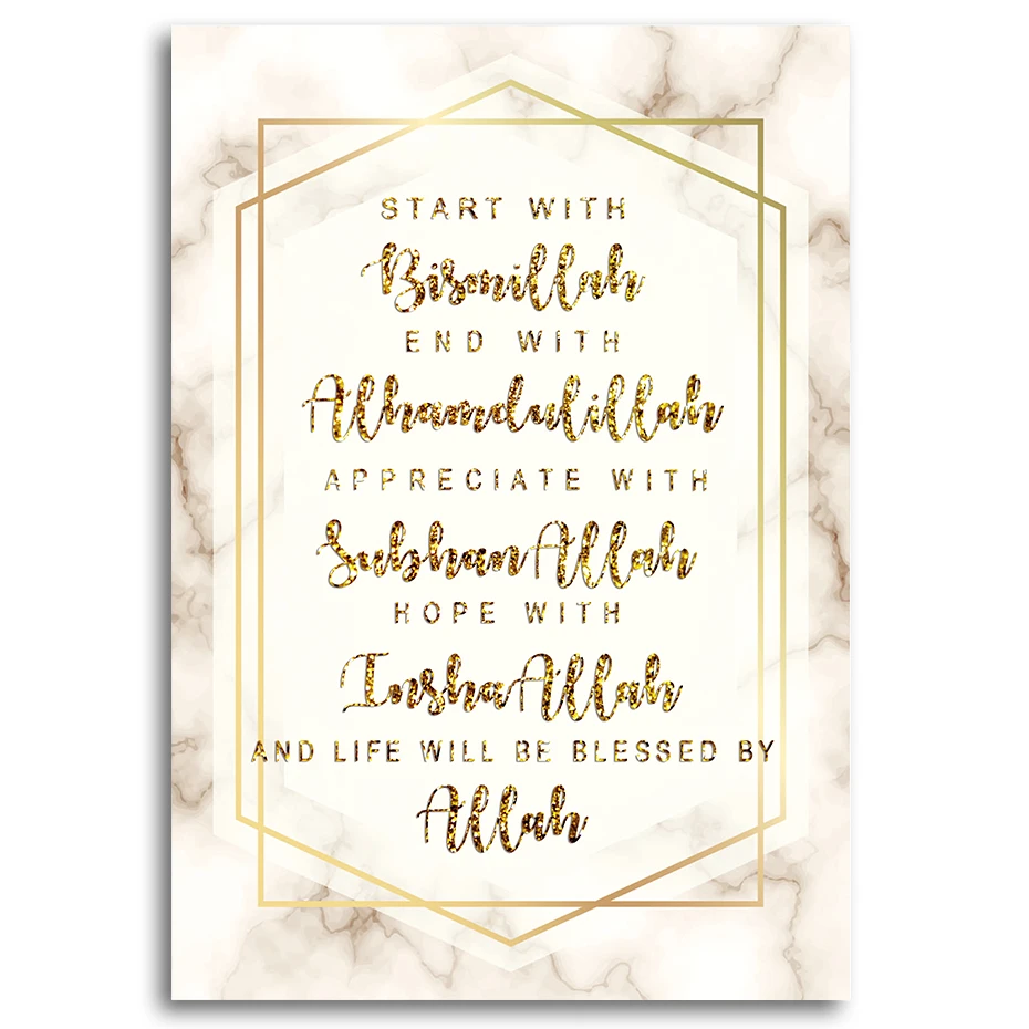 Белая мраморная мусульманская Настенная картина начните с Bismillah...