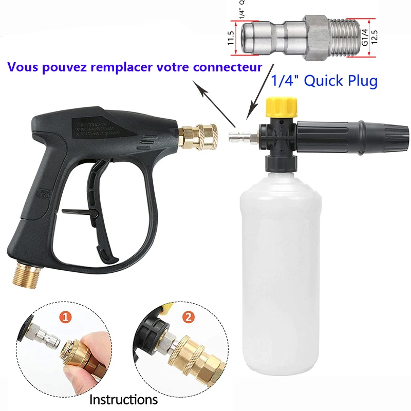 1. Бесцветная с 1L быстроразъемным 1/4 "пенным флаконом + M22-14 распылительным пистолетом + 5 распылительных насадок + (металл) Karcher quick Connect